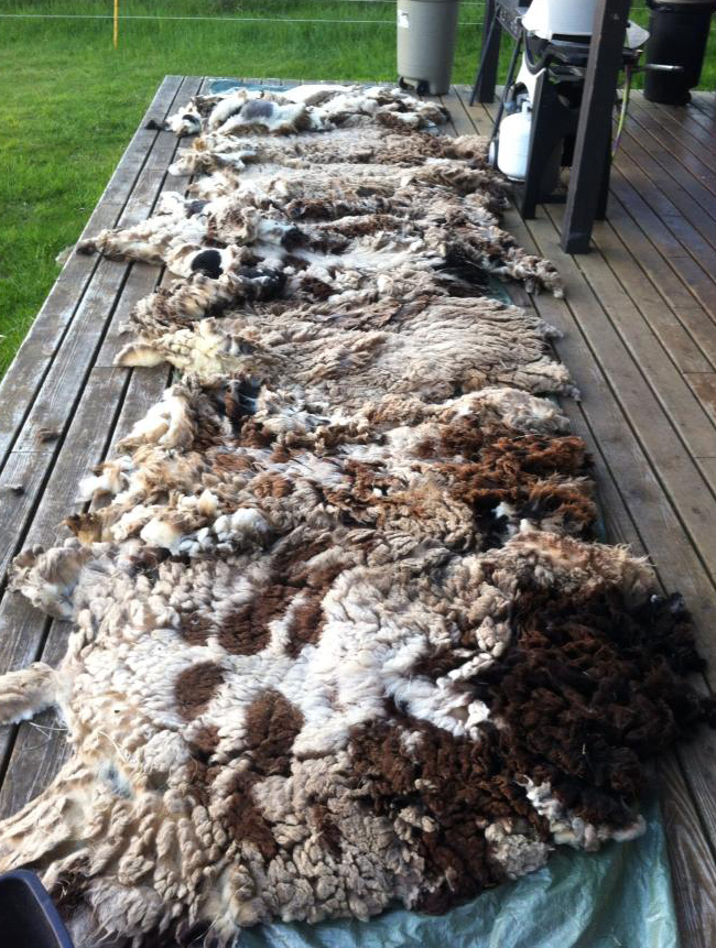 Later on, I saw these lovely pics... friendly happy naked sheep, accompanied by fives fresh fleeces Ryan purchased for the shop.